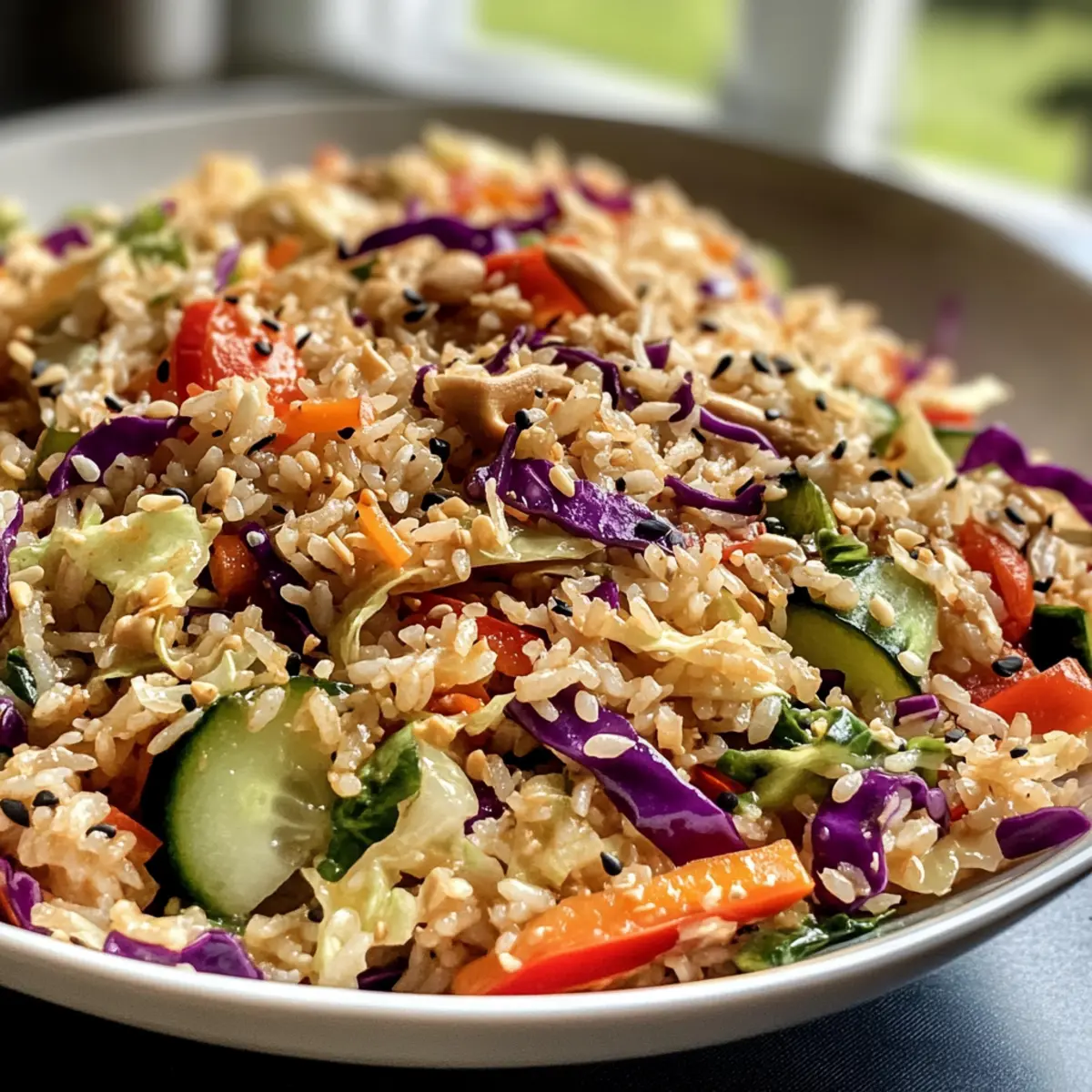 Ein frischer Biss in diesen knusprigen Reissalat mit Erdnuss-Sesam-Dressing zaubert sofort gute Laune auf den Tisch. Dieser Salat ist nicht nur ein Augenschmaus mit seiner bunten Mischung aus knackigem Gemüse, sondern auch ein echtes Zeitwunder in der Küche. In nur wenigen Minuten kannst du ihn zubereiten, was ihn perfekt für stressige Tage macht. Die Kombination aus aromatischem Jasminreis und dem cremigen Dressing macht ihn nicht nur zu einer tollen Beilage, sondern auch zu einem sättigenden Hauptgericht, das du im Voraus zubereiten kannst. Perfekt für ein gesundes Mittagessen oder zum Teilen bei geselligen Anlässen! Hast du schon einmal daran gedacht, dass du mit einfachen Zutaten ein solches Geschmackserlebnis kreieren kannst? Lass uns gemeinsam in die Welt des knusprigen Reissalats eintauchen!
