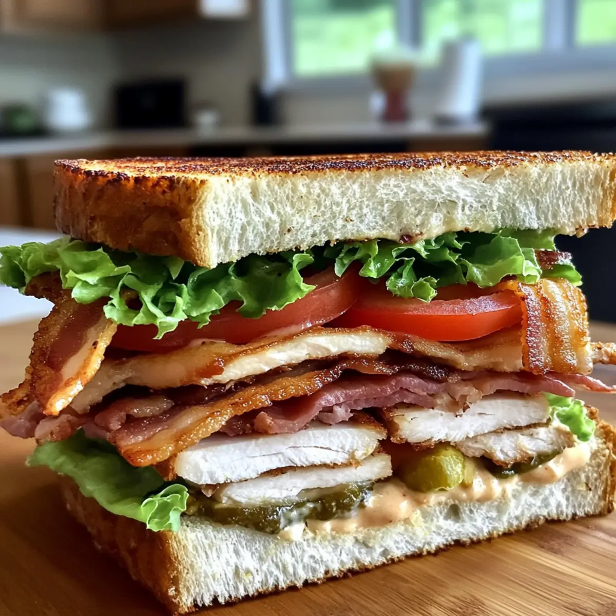 Einzigartiger Genuss: Dieses knusprige ultimative Club-Sandwich vereint köstliche Zutaten, die jedem Gaumen schmeicheln.