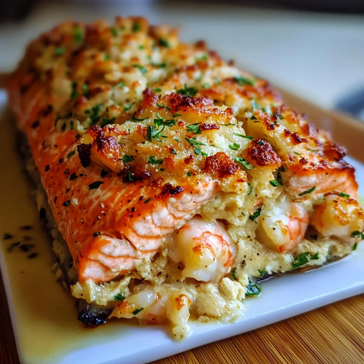 Krabben- und Garnelen gefüllter Lachs ganz einfach