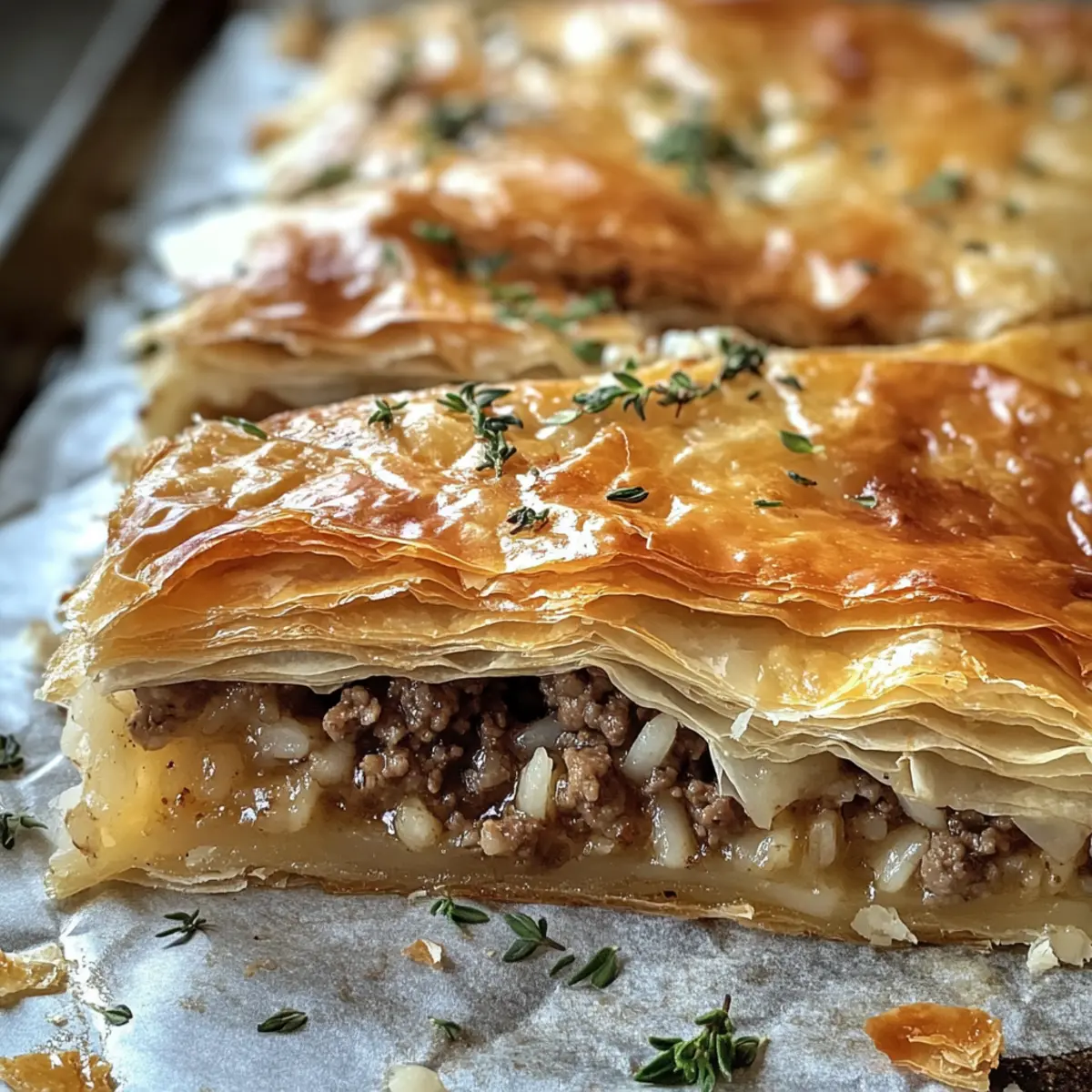Herzhafter Geschmack: Jeder Biss bringt die wunderbare Kombination aus würzigem Hackfleisch und zartem Feta-Käse zur Geltung. Knuspriger Teig: Die goldene Blätterteigschicht sorgt für den perfekten Crunch, der das Geschmackserlebnis abrundet. Vielseitig: Ob als Hauptgericht oder als Snack – Kreatopita passt immer! Einfache Zubereitung: Mit nur wenigen Zutaten und einfachen Schritten ist dieses Rezept für jedermann schnell nachzumachen. Wunderbar für Feiern: Ideal für festliche Anlässe oder Familienessen, sorgt es garantiert für Begeisterung. Probiere es aus und serviere dazu einen frischen Griechischen Salat!