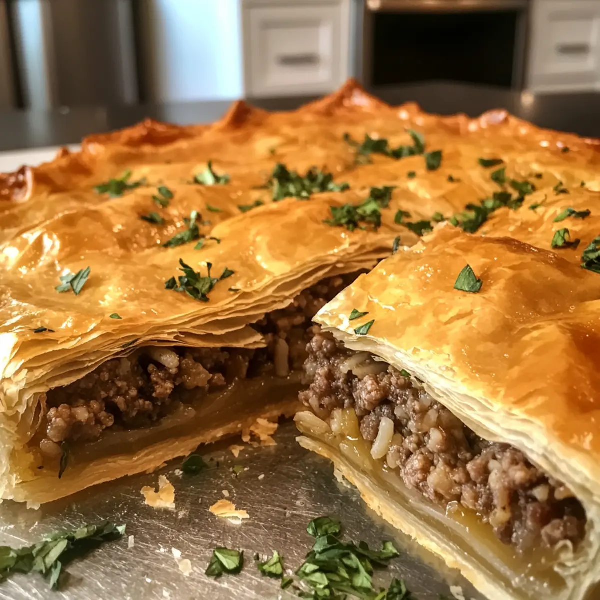 - Blätterteig – bildet die knusprige, goldene Schicht; solltest du ihn selbst machen wollen, nutze eine Mischung aus Mehl und Butter für beste Ergebnisse.