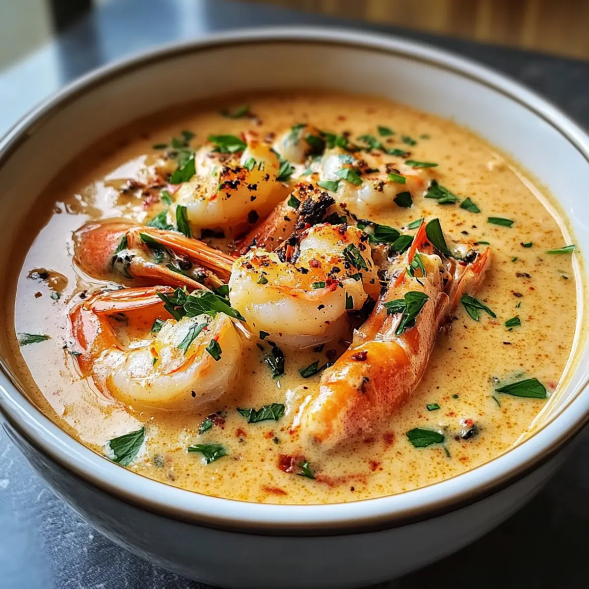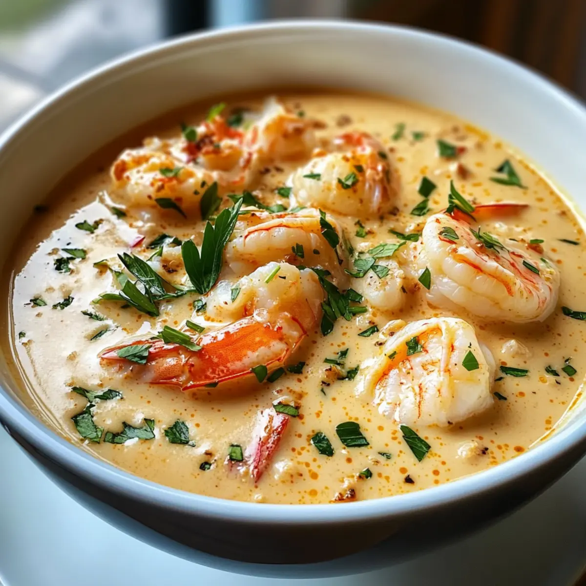 Samtige Textur: Diese bisque bietet die perfekte Kombination aus einer cremigen Basis und den zarten Stücken von Krabbenfleisch und Garnelen.