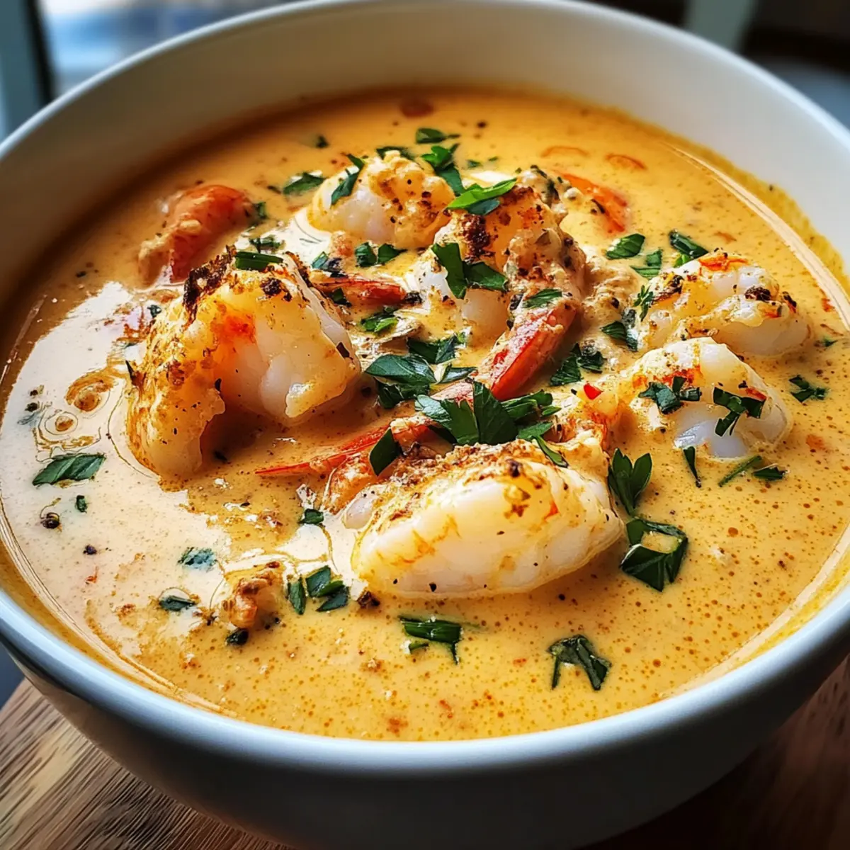 Diese Meeresfrüchte-Bisque entfaltet ihren vollen Geschmack durch die Kombination frischer Zutaten und verleiht jedem Bissen eine luxuriöse Note!