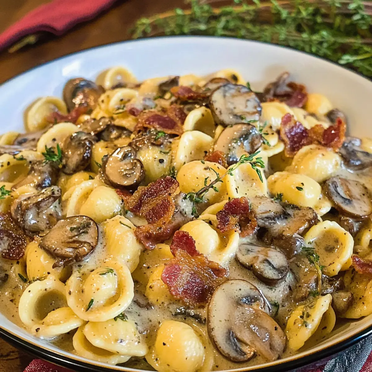 Fleischfrei: Ersetze den Bacon mit einer Kombination aus geräuchertem Tofu oder Tempeh für eine herzhafte, pflanzliche Variante. Der rauchige Geschmack passt hervorragend zu den Pilzen.