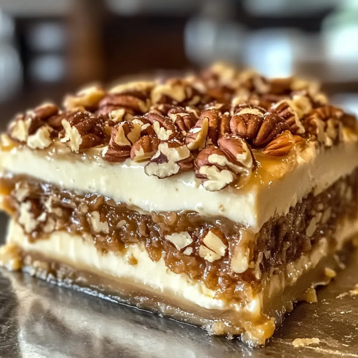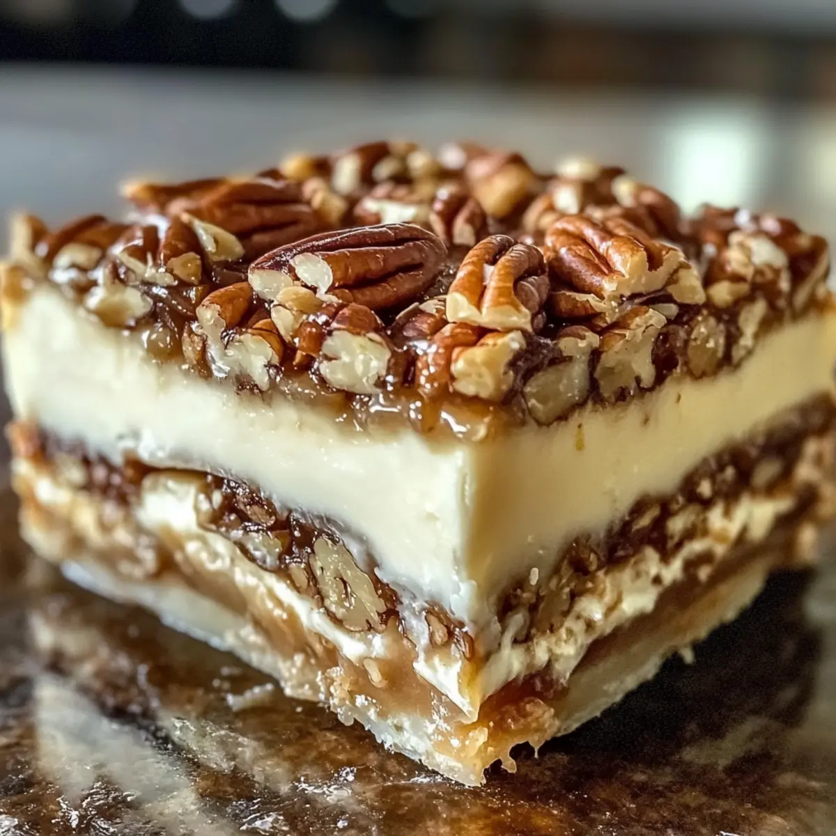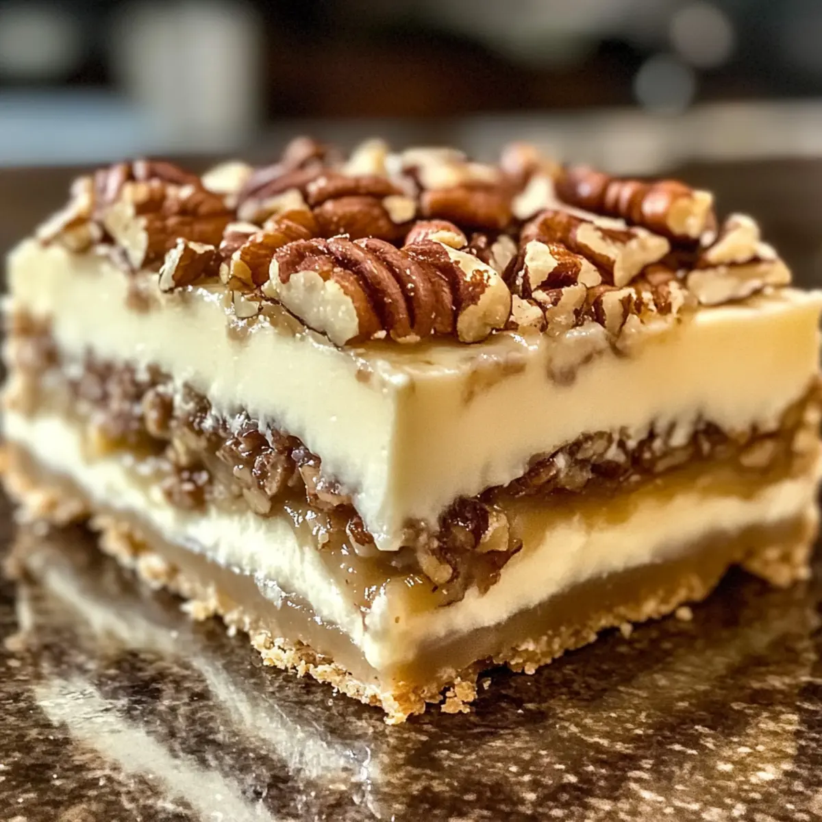 Kühlen nicht überstürzen: Lassen Sie die Pekannussschicht ausreichend abkühlen, bevor Sie sie auf die Cremefüllung gießen; dies verhindert, dass sich die Schichten vermischen.