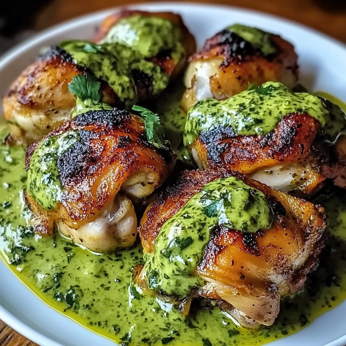 Wiedererwärmen: Erwärme das Hähnchen im Ofen bei 175 °C für 15-20 Minuten, um die Knusprigkeit der Haut zu erhalten; die cremige grüne Sauce kann separat hinzugefügt werden.