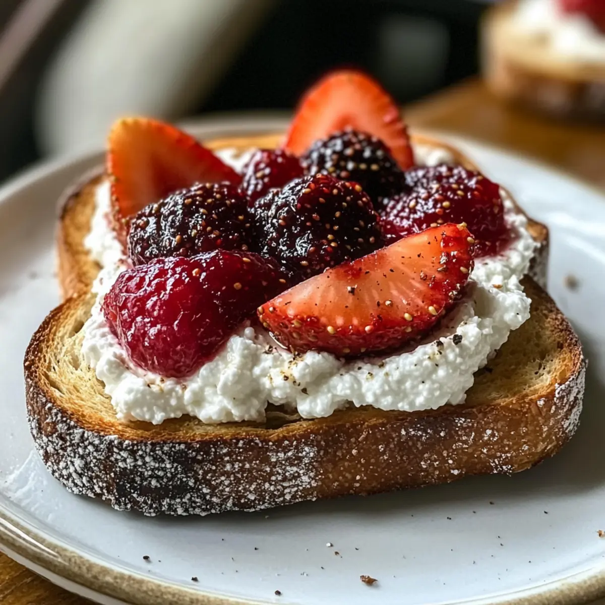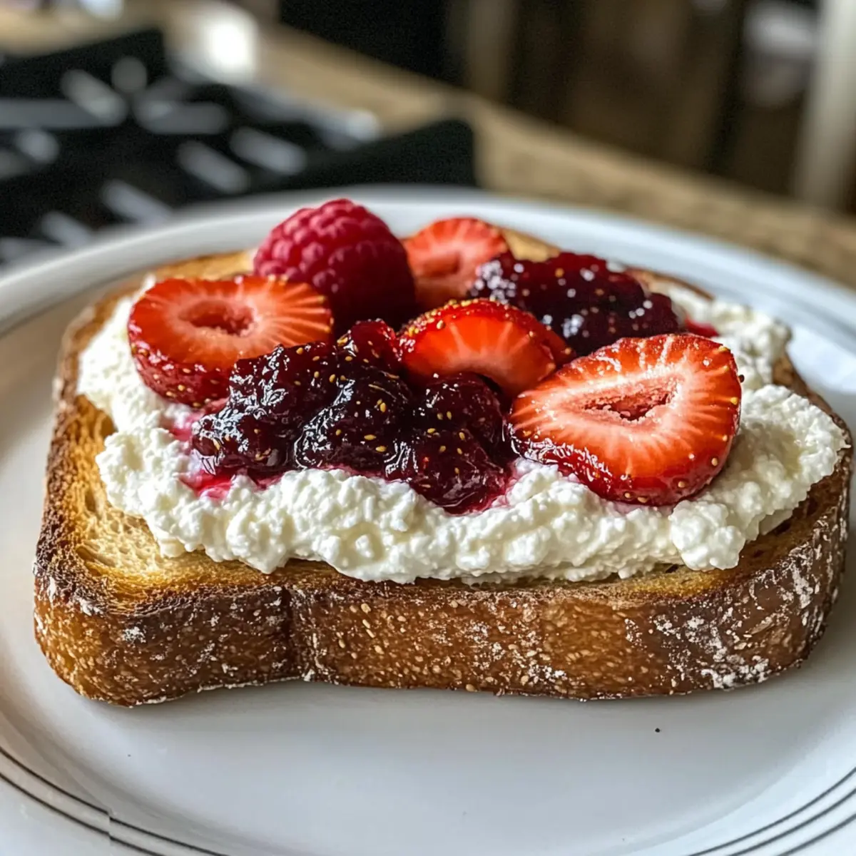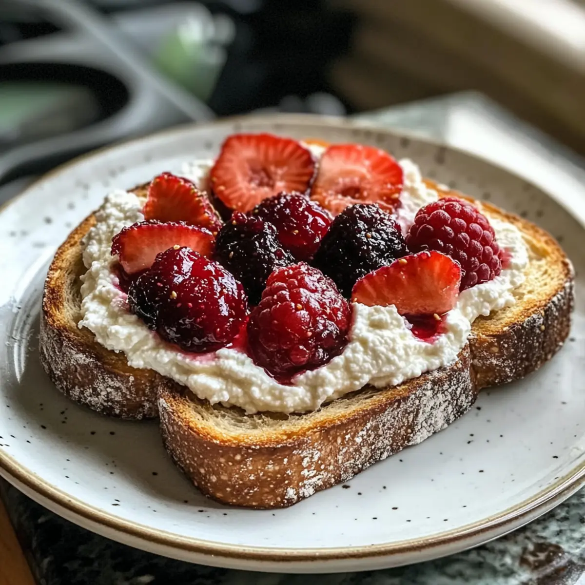 - Vielfältige Marmeladen – Verwende eine Mischung aus Erdbeer-, Himbeer- oder Feigenmarmelade; andere Sorten sind nach Belieben substituierbar, um den Ricotta-Toast mit drei Marmeladen zu individualisieren.