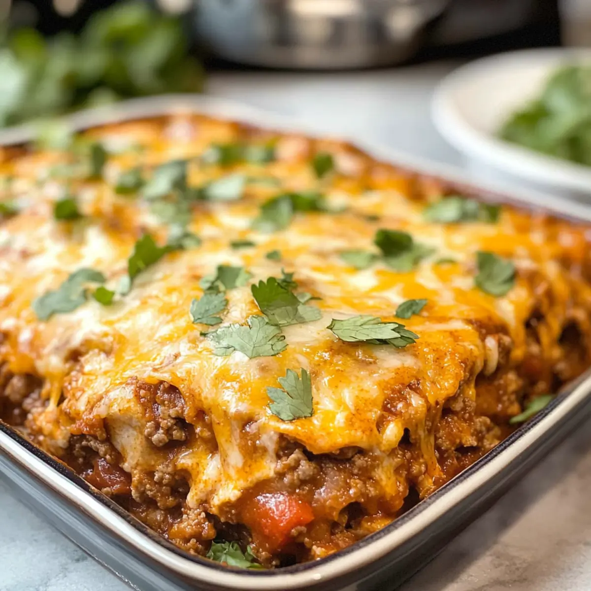 Rindfleisch-Enchilada-Auflauf mit Maistortillas geniessen