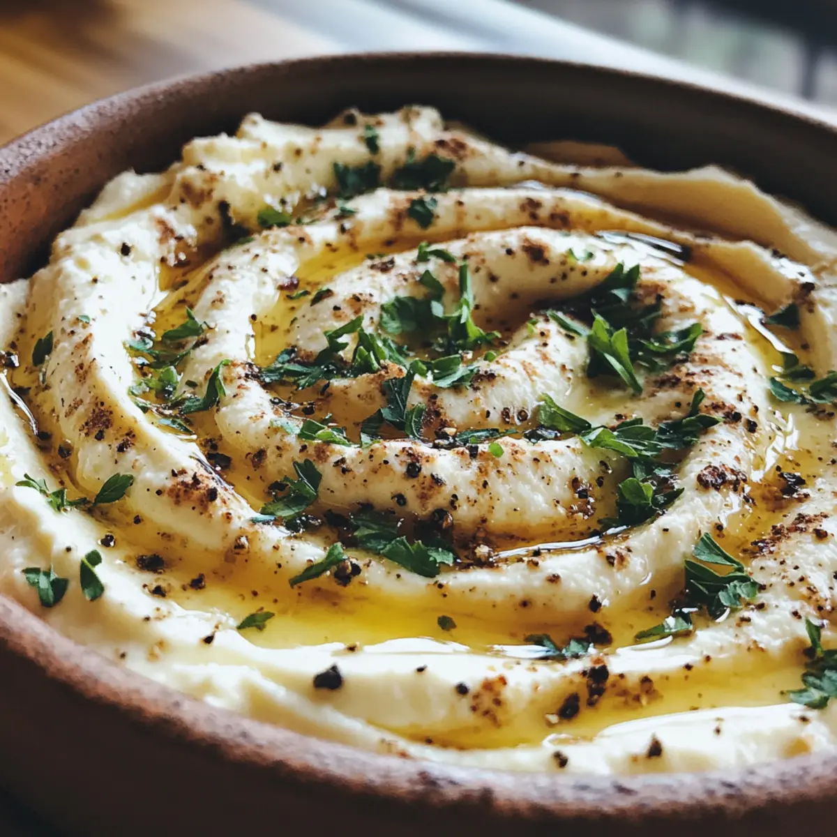 - Garnier den Dip mit frisch gemahlenem Pfeffer, Zitronenschale und frischen Kräutern. Serviere ihn sofort mit Crostini oder Gemüsesticks.