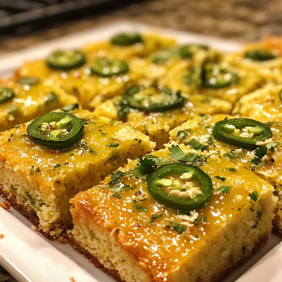 - Ruhen lassen: Lass das Scharfe süße Jalapeño-Maisbrot nach dem Backen etwas abkühlen, damit sich die Aromen setzen und es beim Schneiden nicht auseinanderfällt.