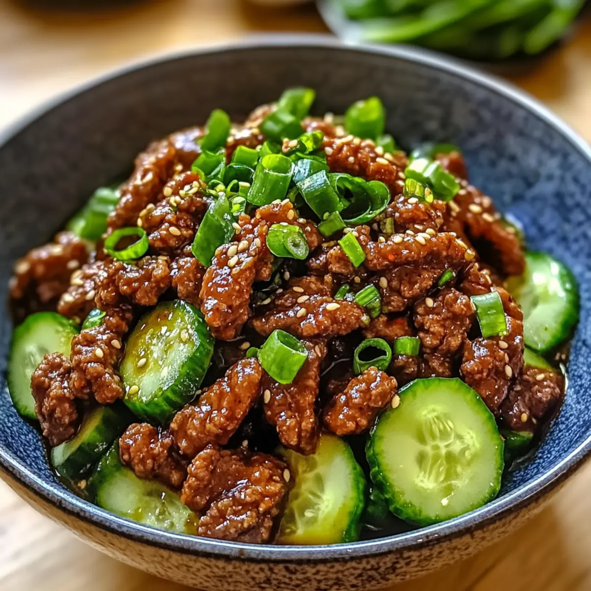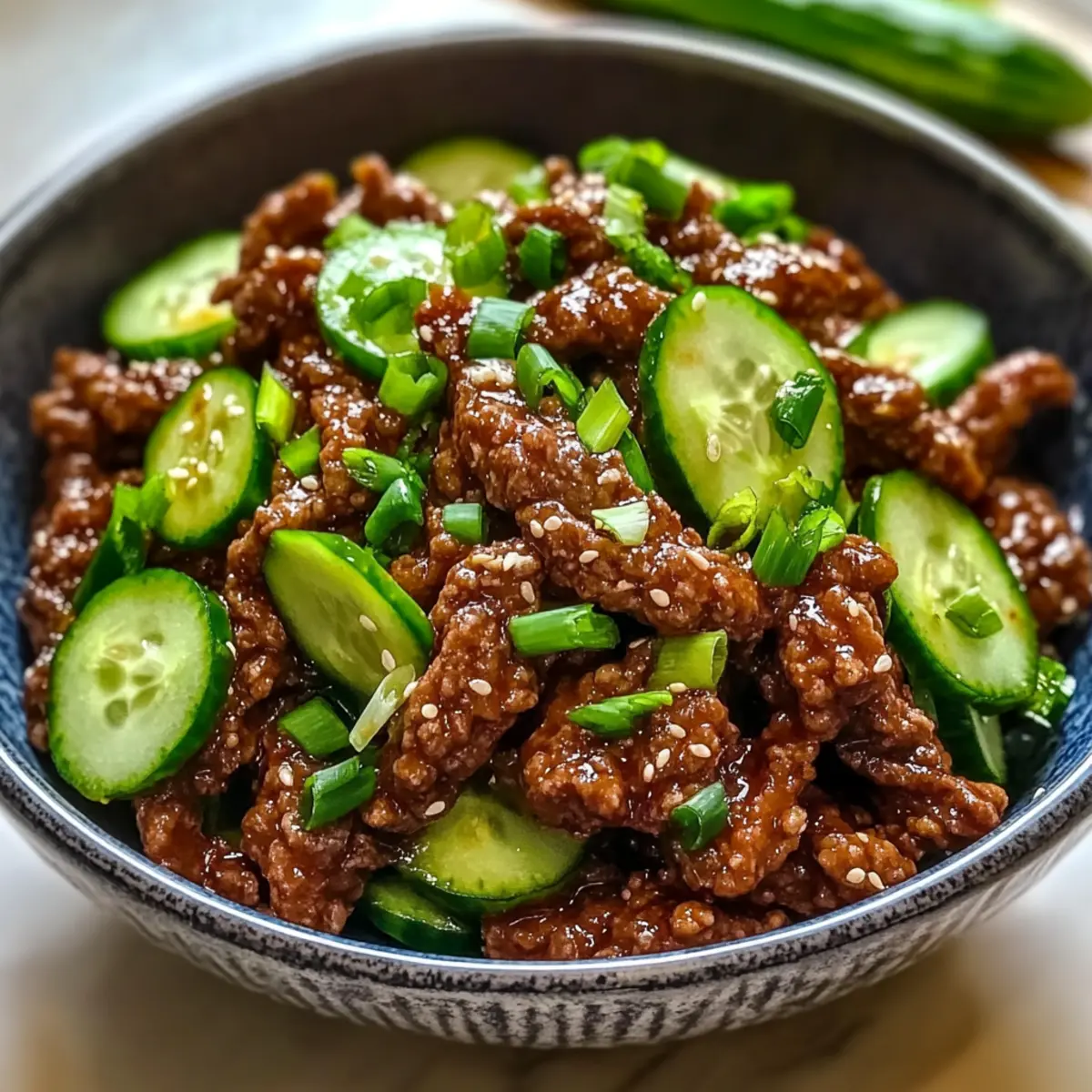 Scharfes Keto Koreanisches Rindfleisch mit Gurkensalat