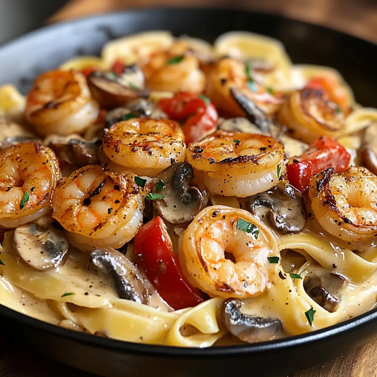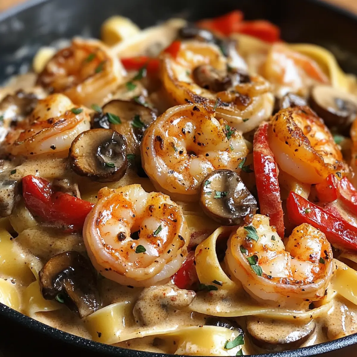 Schwarze Garnelen Stroganoff mit Cajun-Flair