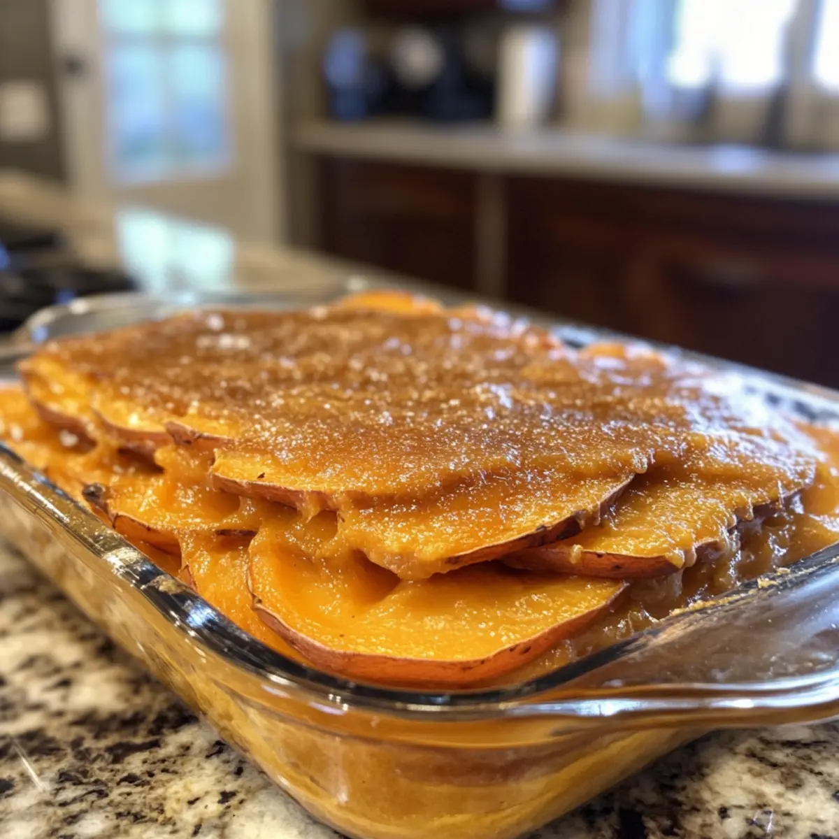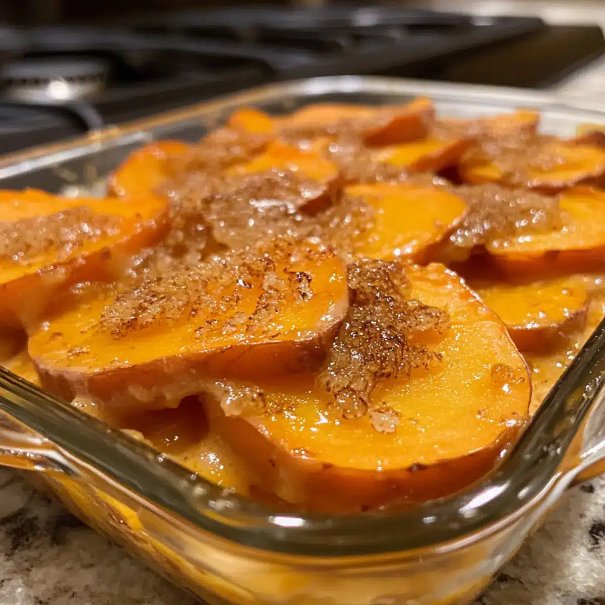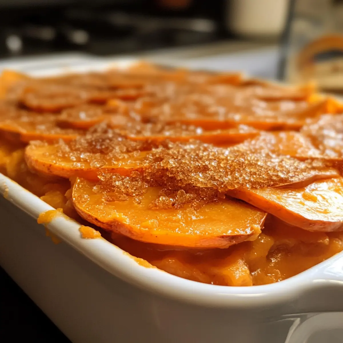Cremiger Genuss: Butterweiche Süßkartoffeln umhüllt mit einer köstlichen, leicht karamellisierten Sauce versprechen ein Geschmackserlebnis, das Erinnerungen weckt.