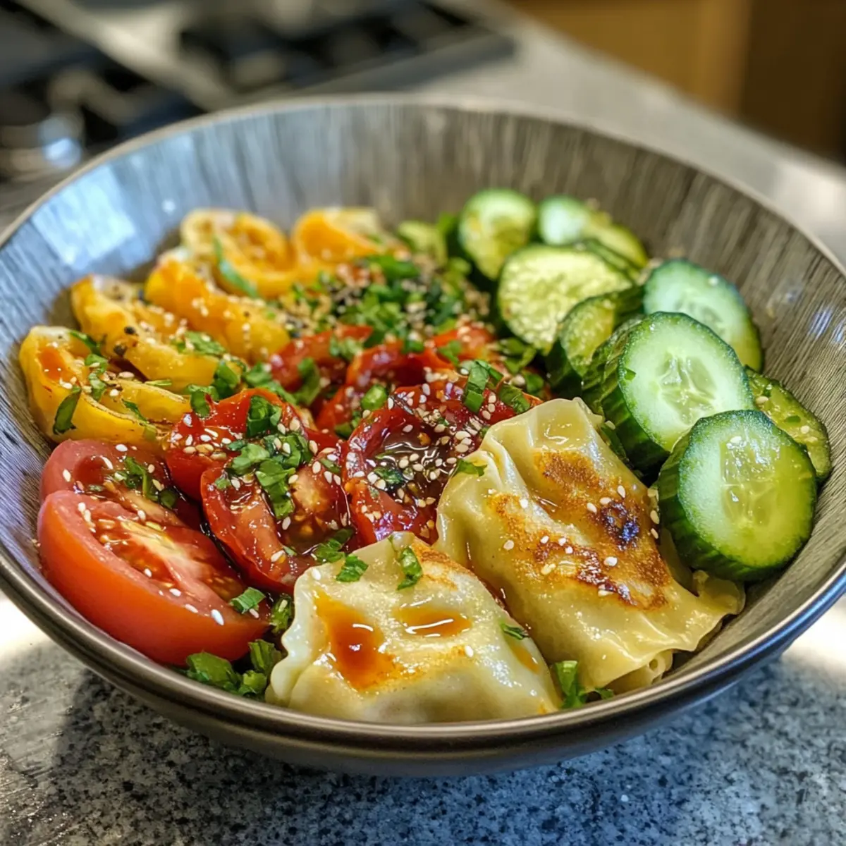 Frische Aromen: Der Teigtaschen-Salat kombiniert die köstliche Umami-Geschmack der Teigtaschen mit knackigem Gemüse wie Gurken und Karotten. Einfach zubereitet: Mit nur wenigen Zutaten ist dieses Gericht schnell und mühelos nachzubereiten – ideal für stressige Wochentage. Gesund und nährstoffreich: Jedes Bissen ist reich an Vitaminen und Ballaststoffen, perfekt für eine ausgewogene Ernährung. Vielseitigkeit: Du kannst die Zutaten nach Belieben anpassen, wie zum Beispiel frischen Koriander oder Erdnüsse für einen zusätzlichen Crunch. Beeindruckt deine Gäste: Dieses Gericht sieht nicht nur toll aus, sondern bietet auch eine Geschmacksexplosion, die selbst die anspruchsvollsten Gaumen begeistert. Probier es aus und entdecke selbst, wie köstlich gesundes Essen sein kann!