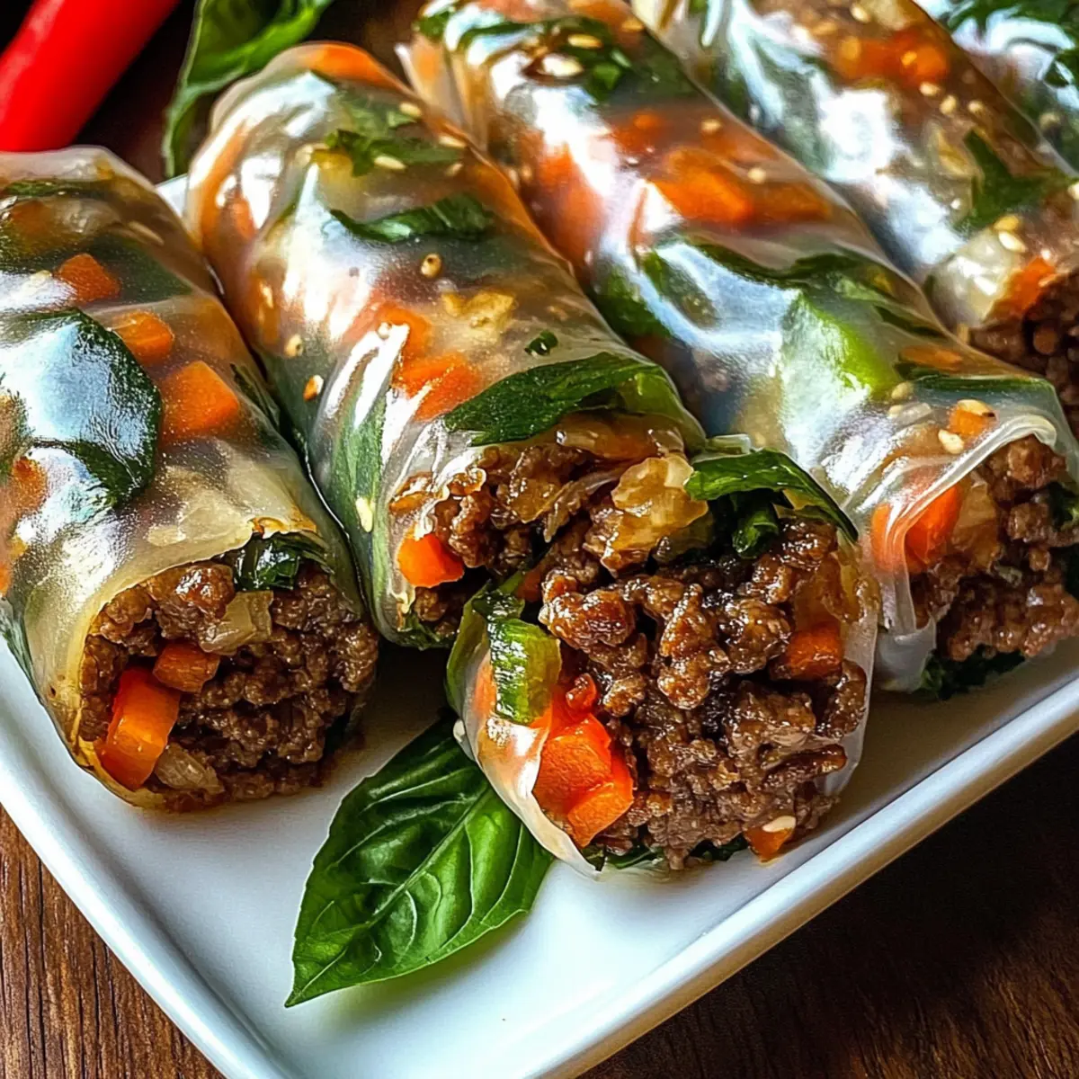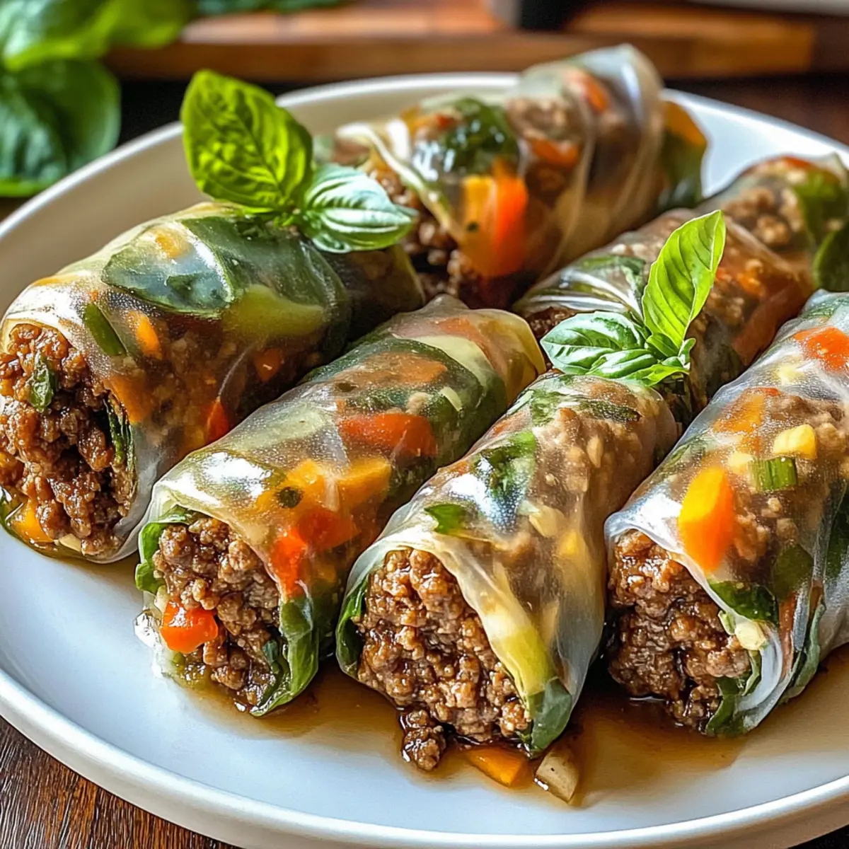 Frisch servieren: Um die besten Texturen und Aromen zu gewährleisten, serviere die Thailändischen Basilikum-Rindfleisch-Rollen sofort nach der Zubereitung. So bleiben sie knackig und lecker.
