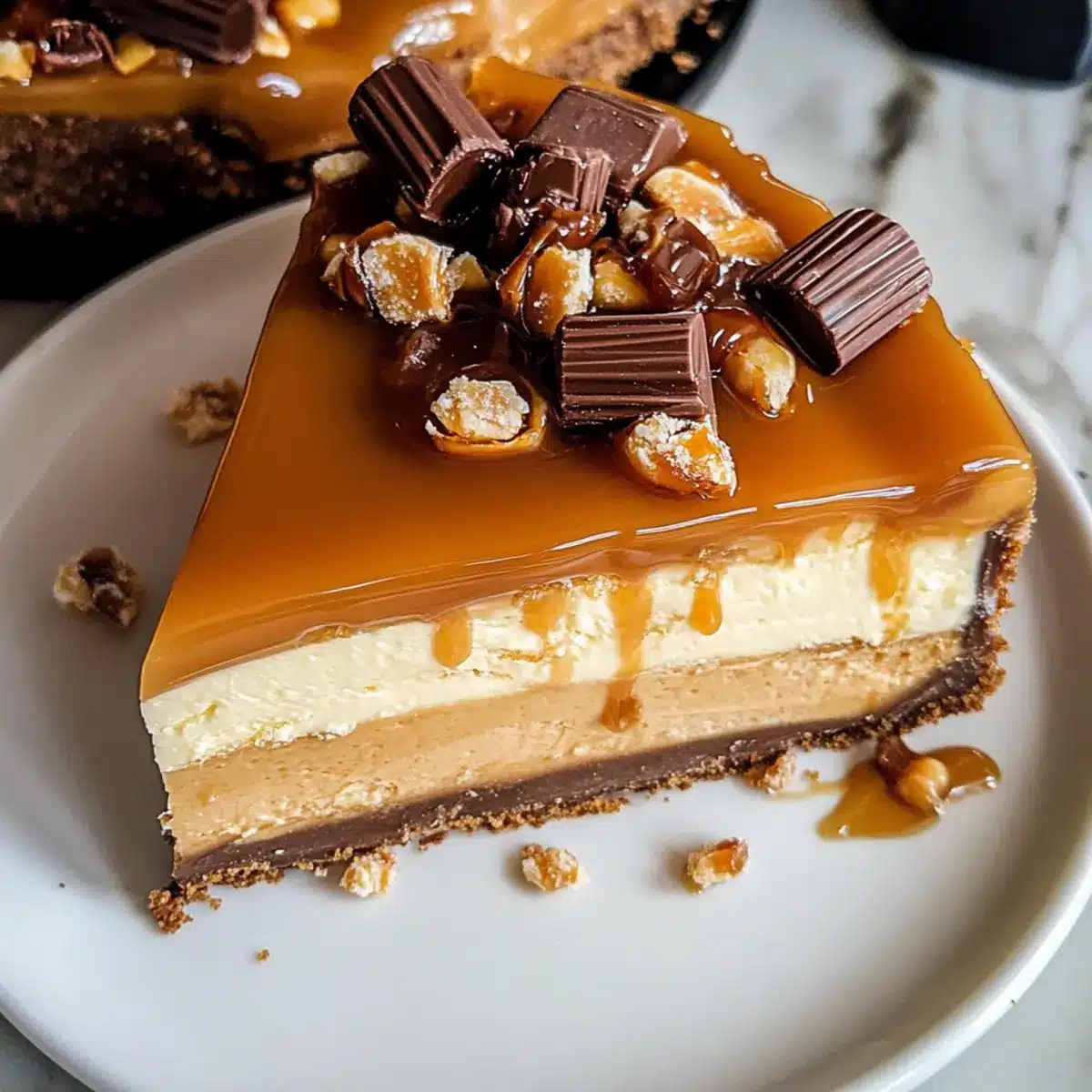 Himmlischer Geschmack: Die Kombination aus cremigem Käsekuchen und knusprigen Twix macht jeden Bissen unwiderstehlich.