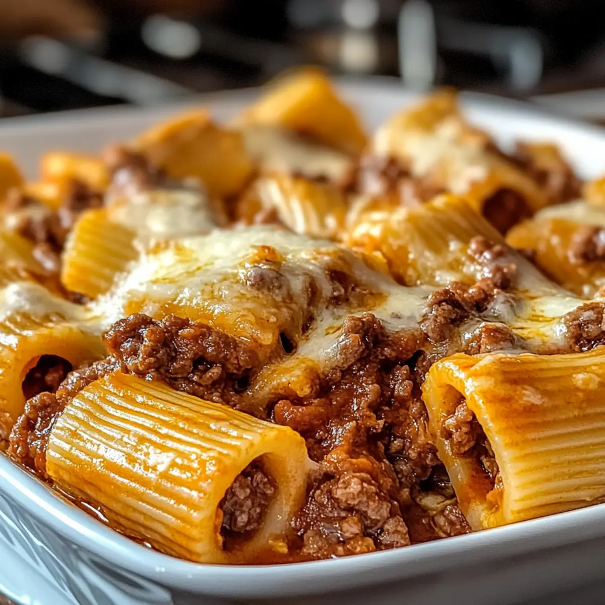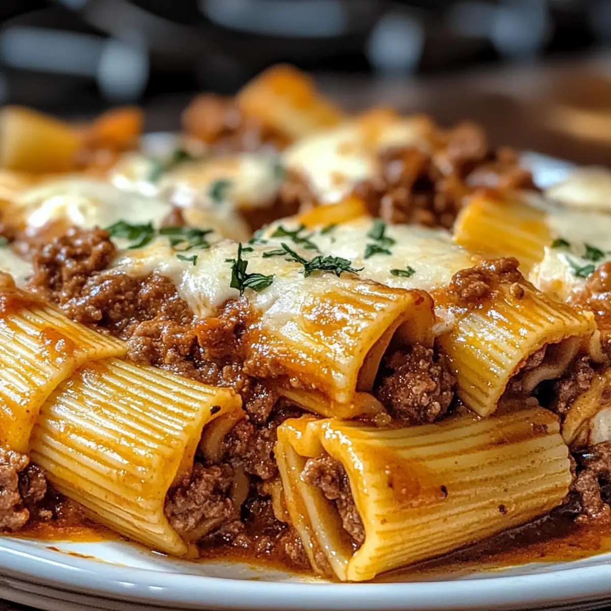 Überbackene Rigatoni mit Rindfleischragout genießen
