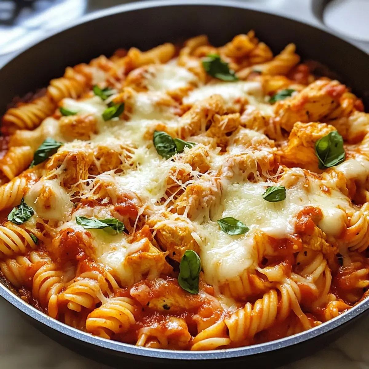 Ultimative Hähnchen-Parmesan-Nudeln-Pfanne schnell genießen