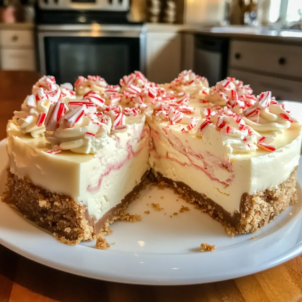 Weiße Schokolade Pfefferminz Käsekuchen für die Feiertage