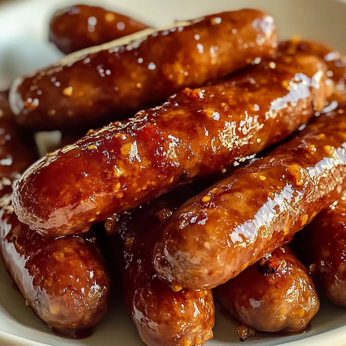 - Glasur hinzufügen: Gieße die vorbereitete Sauce über die gebräunten Lil Smokies und lasse die Mischung für etwa 3 bis 5 Minuten weiterköcheln.